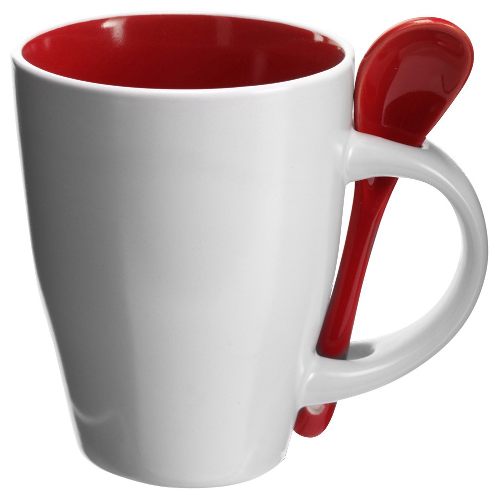Kerámia bögre kiskanállal, 260 ml. Mosogatógépbe és mikrohullámú sütőbe helyezhető. A dobozt tartalmazza az ár.