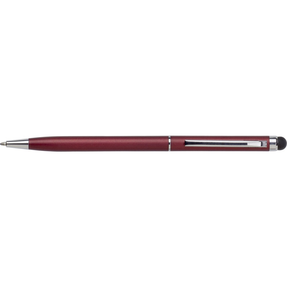 Alumínium golyóstoll gumi érintővel, kék tollbetéttel.