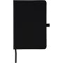 RPET 600D poliészterből készült, PU bevonatú, A5-ös jegyzetfüzet. 80 lap, 70 g/m2 vonalas papír, könyvjelző szalaggal, gumipánttal és tolltartó hurokkal. Félkemény borítású kialakítás. A hátoldalon dombornyomott recycled (újrahasznosított) alapanyagra utaló logó található.