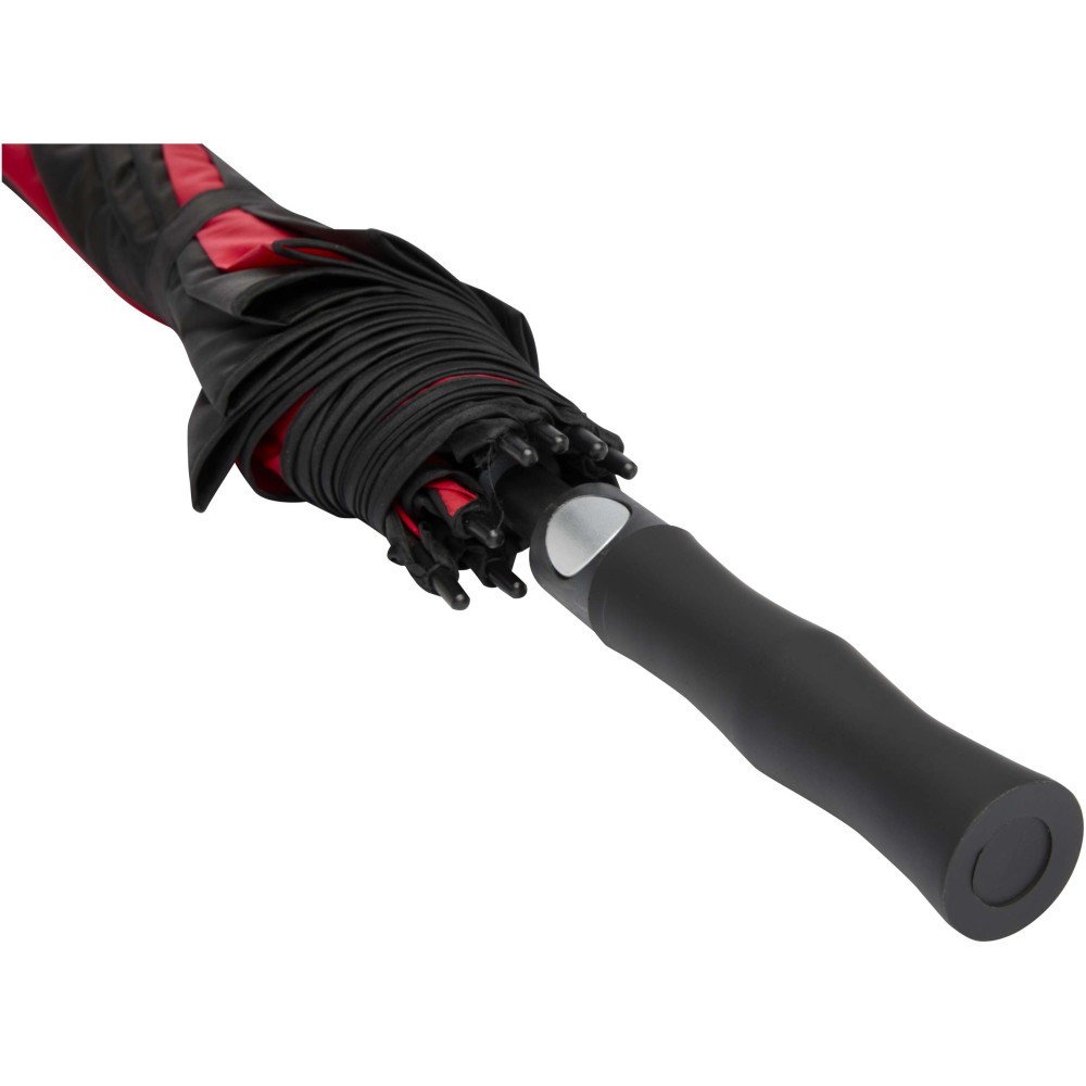A Jeff szélálló golfesernyő tágas, 55 hüvelykes poliészter ernyőrésszel rendelkezik, amely kényelmesen megvéd több személyt is az időjárástól. Erős üvegszálas szára és váza kiváló rugalmasságot biztosít, így jól ellenáll az erős szélnek. Praktikus műanyag fogantyúja automata nyitógombbal van ellátva, ami gyors és egyszerű használatot tesz lehetővé. Kontrasztos ernyőpaneljei remek lehetőséget kínálnak feltűnő, látványos emblémázásra, így ideális választás rendezvényekhez, promóciókhoz vagy mindennapi használatra.