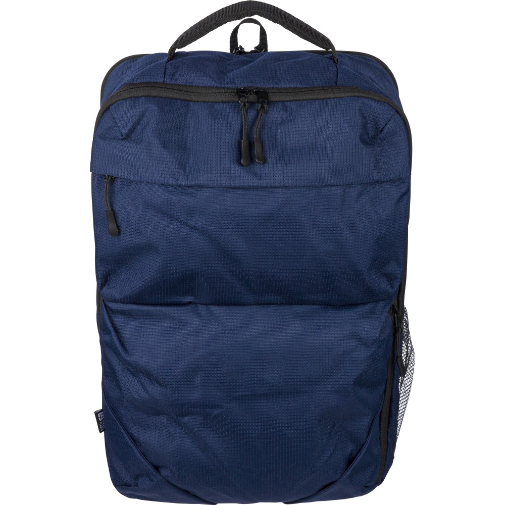 RPET 300D Ocean Bound anyagból készült hátizsák, amely újrahasznosított óceáni műanyagból készül, tartós és texturált felületű kialakítással. 20 literes űrtartalommal rendelkezik, két nagy cipzáras rekesszel, párnázott 15 hüvelykes laptoprekesszel, két elülső zsebbel, hálós oldalzsebbel és felső fogantyúval. Szellőző vállpántokkal, párnázott hátoldallal és bőröndre rögzíthető pánttal ellátva, a terméken Ocean Bound Plastic alapanyagra utaló címke található.