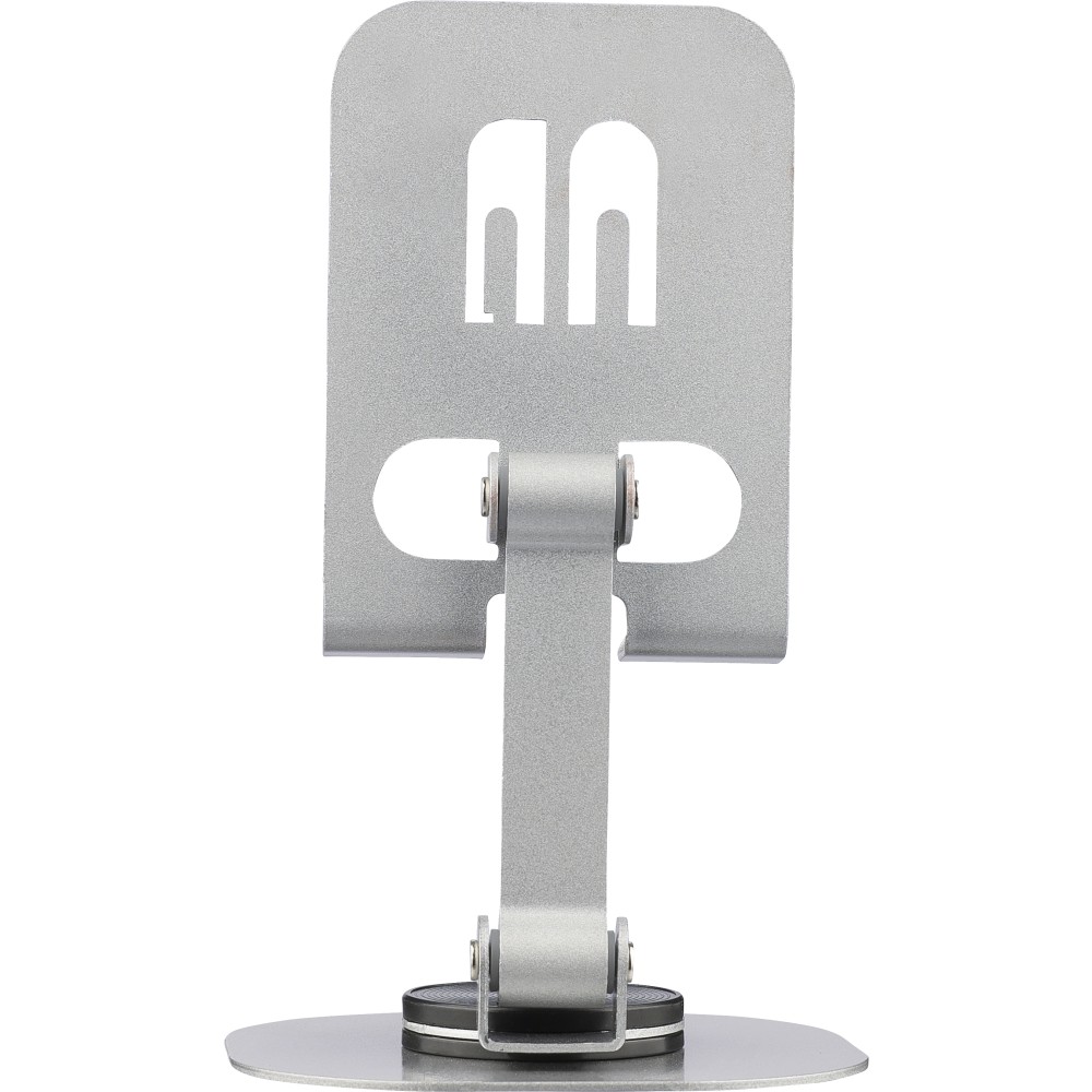 Alumíniumötvözetből készült telefontartó 360 fokos forgatható funkcióval, teljesen lapra hajtható kialakítással a könnyű tárolás érdekében. Stabil tartást biztosító masszív felépítéssel. Egyenként fehér dobozba csomagolva.