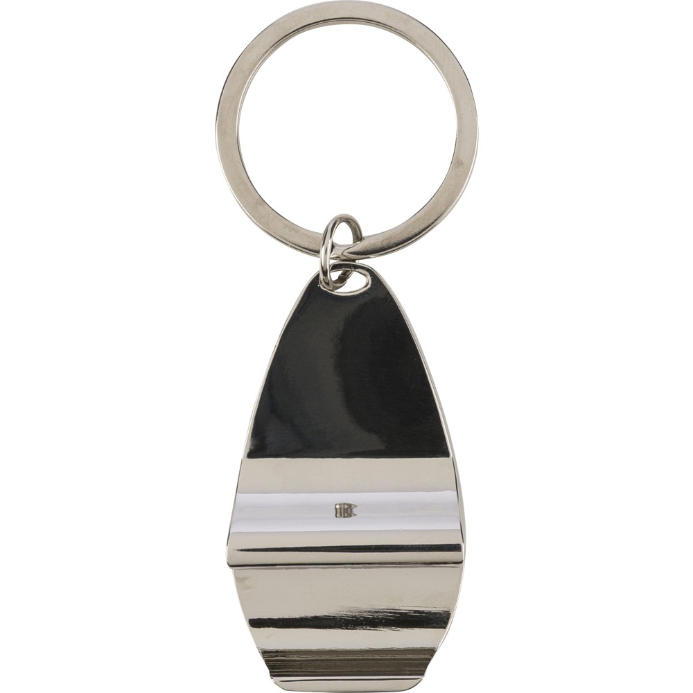 Cinkötvözetből készült kulcstartó fém kulcskarikával és elülső oldalán bambusz betéttel, sörnyitó funkcióval. Papírtasakba csomagolva.