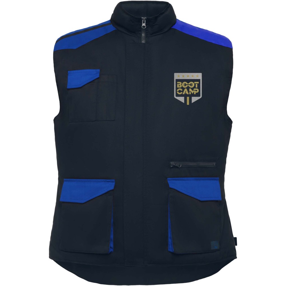 Magasított gallérral ellátott többfunkciós munkavédelmi mellény. Az elülső cipzárt tépőzáras hajtóka takarja, a karkivágások szélfogó belső passzéval készültek. A jobb oldalon tépőzáras külső mobiltelefontartó zseb található. A terméket két tépőzáras elülső zsebbel, két tolltartó rekesszel, egy tépőzáras belső zsebbel, valamint egy plusz cipzáras zsebbel látták el. A vállrészek és a részletek kontrasztos színű elemekkel díszítettek.