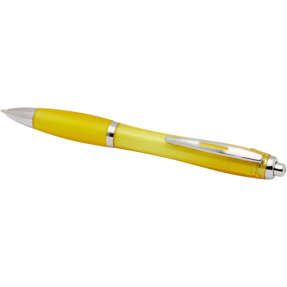 A Nash újrahasznosított műanyagból készült nyomógombos golyóstoll stílusos, ívelt kialakítású, áttetsző színes tolltesttel, ezüst díszítéssel és a tolltest színével megegyező, kényelmes írást biztosító puha fogórésszel rendelkezik. Az RCS tanúsítvánnyal rendelkező újrahasznosított ABS műanyagból készült termék segít csökkenteni a szűz alapanyagok felhasználását, miközben megőrzi tartósságát. A toll hátoldalán található rABS logó jelzi az újrahasznosított anyagösszetételt. Tinta színe: fekete. Tollhegy mérete: 1.0 mm. Íráshossz: 1000 méter.