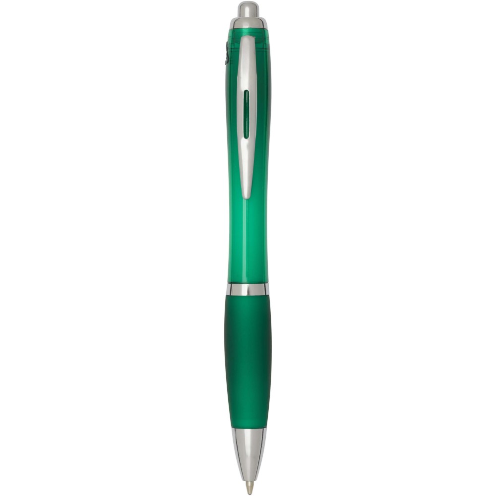 A Nash újrahasznosított műanyagból készült nyomógombos golyóstoll stílusos, ívelt kialakítású, áttetsző színes tolltesttel, ezüst díszítéssel és a tolltest színével megegyező, kényelmes írást biztosító puha fogórésszel rendelkezik. Az RCS tanúsítvánnyal rendelkező újrahasznosított ABS műanyagból készült termék segít csökkenteni a szűz alapanyagok felhasználását, miközben megőrzi tartósságát. A toll hátoldalán található rABS logó jelzi az újrahasznosított anyagösszetételt. Tinta színe: fekete. Tollhegy mérete: 1.0 mm. Íráshossz: 1000 méter.