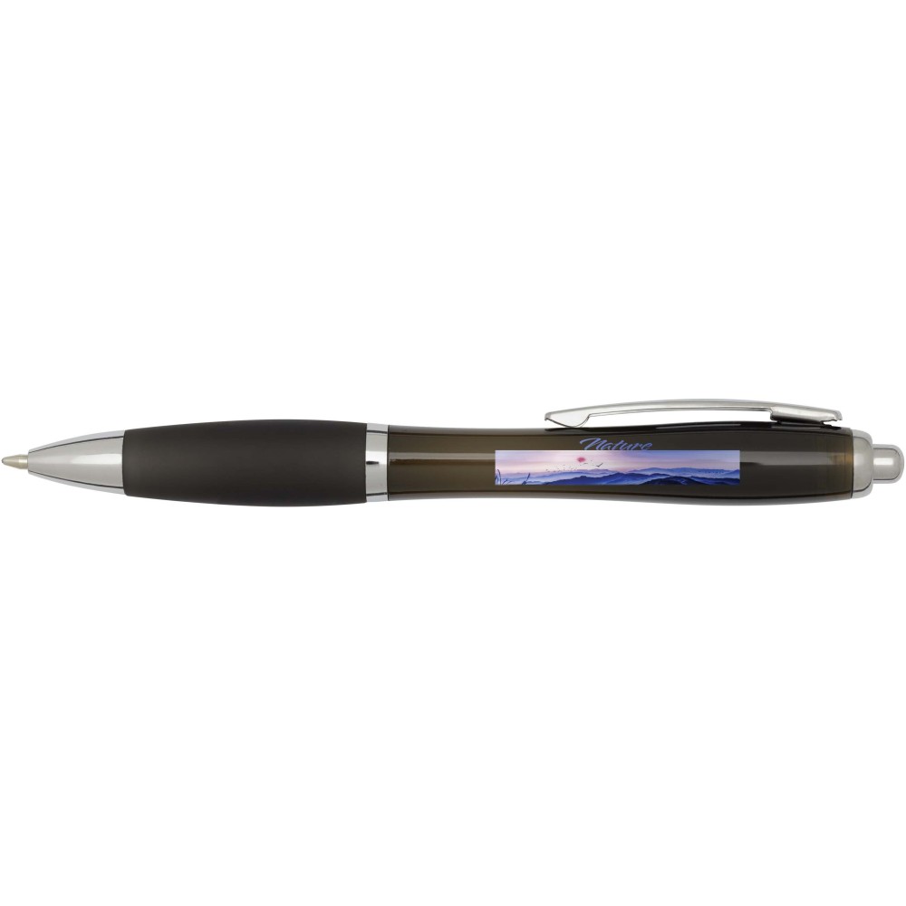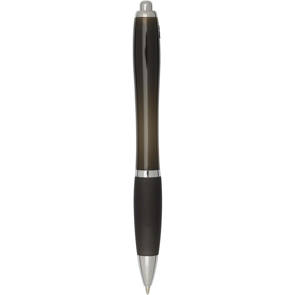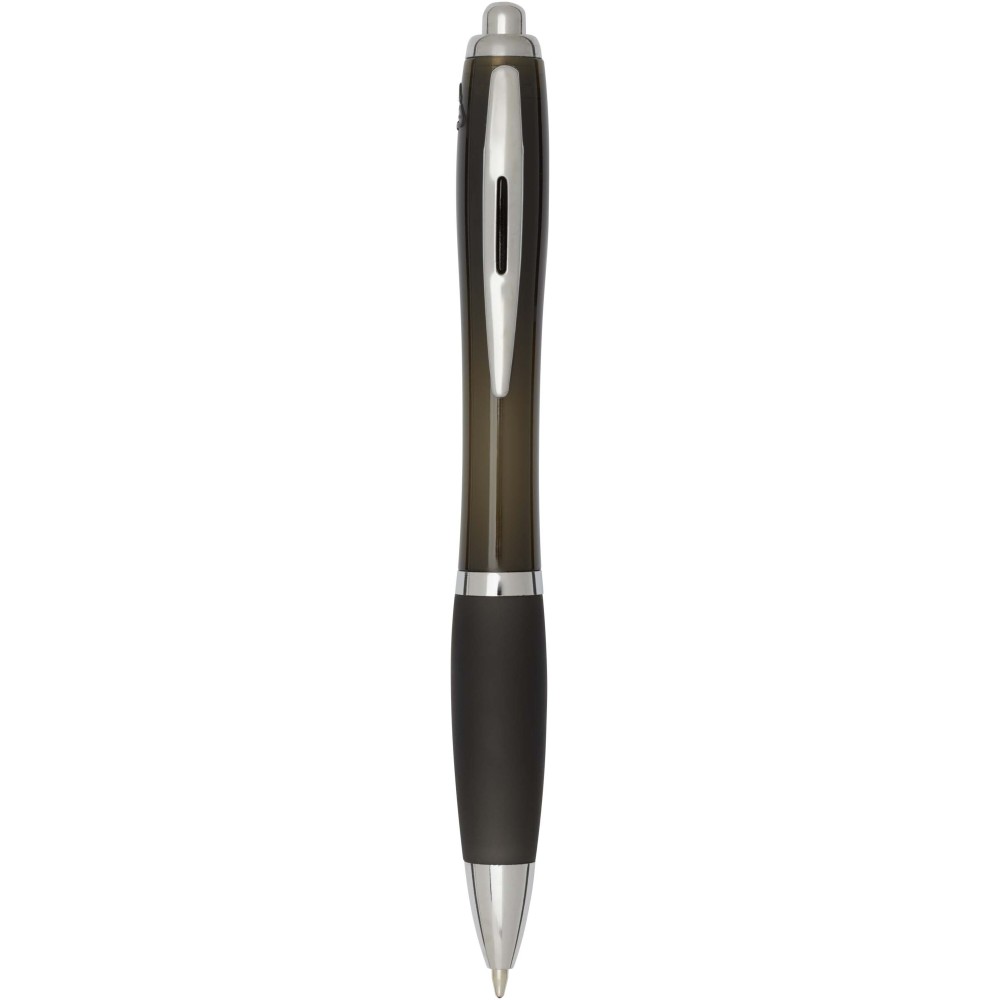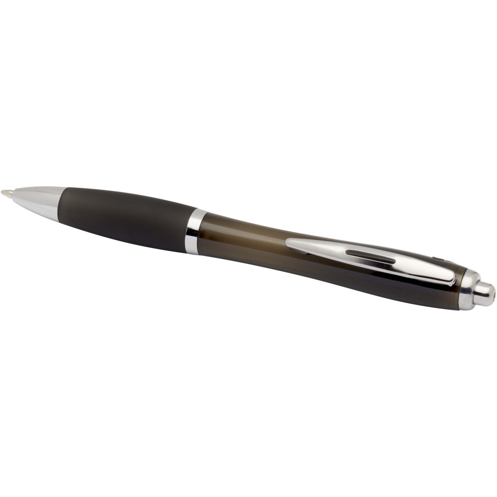 A Nash újrahasznosított műanyagból készült nyomógombos golyóstoll stílusos, ívelt kialakítású, áttetsző színes tolltesttel, ezüst díszítéssel és a tolltest színével megegyező, kényelmes írást biztosító puha fogórésszel rendelkezik. Az RCS tanúsítvánnyal rendelkező újrahasznosított ABS műanyagból készült termék segít csökkenteni a szűz alapanyagok felhasználását, miközben megőrzi tartósságát. A toll hátoldalán található rABS logó jelzi az újrahasznosított anyagösszetételt. Tinta színe: fekete. Tollhegy mérete: 1.0 mm. Íráshossz: 1000 méter.