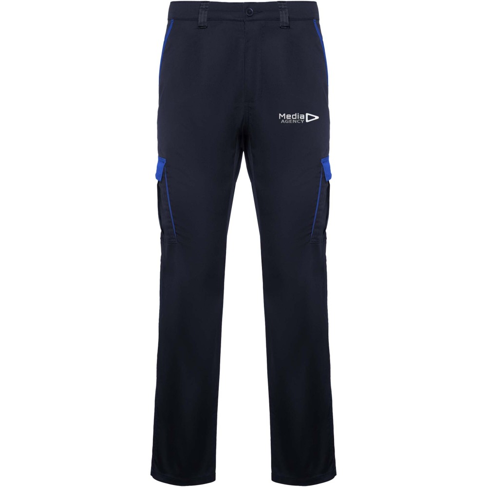 Hosszú szárú munkásnadrág, amely kényelmes és strapabíró anyagból készült. A nadrág hátul gumírozott derékkal rendelkezik az állíthatóság érdekében. Kontrasztos színű övbújtatókkal, zsebfedőkkel, hajtásokkal és szegélyekkel díszített. A praktikus kialakítást két elülső zseb, két tépőzáras fedéllel ellátott, hajtogatott oldalsó zseb, valamint két szintén tépőzáras fedéllel záródó hátsó zseb biztosítja.