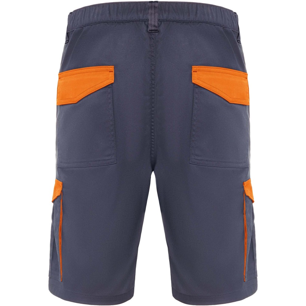 Munkavédelmi rövidnadrág, amely kényelmes és rugalmas anyagának köszönhetően optimális viseletet biztosít. A derékrész hátul gumírozott az állíthatóság érdekében, a nadrágot pedig kontrasztos övhurkok, zsebfedők, hajtások és szegélyek teszik egyedivé. A praktikus kialakítás jegyében két elülső zsebbel, két tépőzáras fedéllel ellátott hátsó zsebbel, valamint két oldalsó, hajtókás és tépőzáras combzsebbel rendelkezik.
