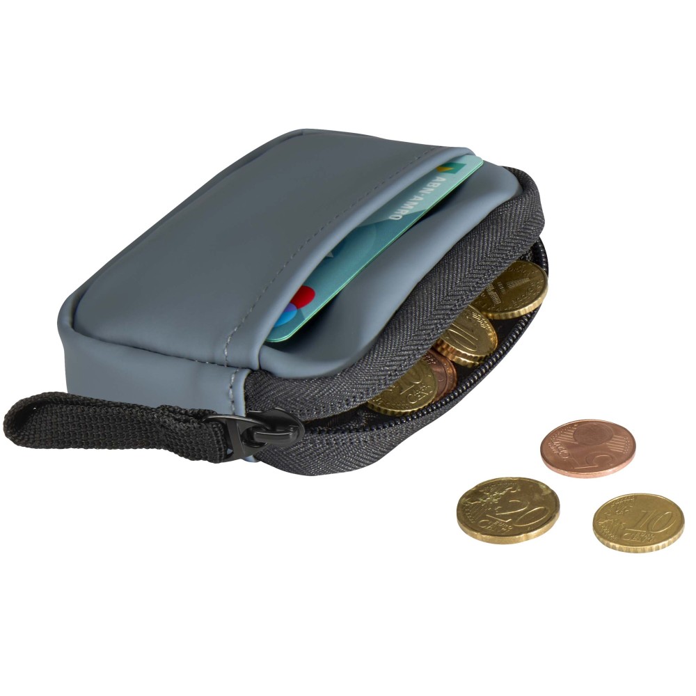 Minőségi újrahasznosított PU bőrből készült, felcsatolható pénztárca, amely ötvözi a letisztult stílust a mindennapi praktikummal. A biztonságos cipzáras záródással és belső kártyatartó rekesszel ellátott kiegészítő gondoskodik az értéktárgyak rendszerezett és könnyen hozzáférhető tárolásáról. Egyszerűen rögzíthető táskához, övbújtatóhoz vagy kulcscsomóhoz.