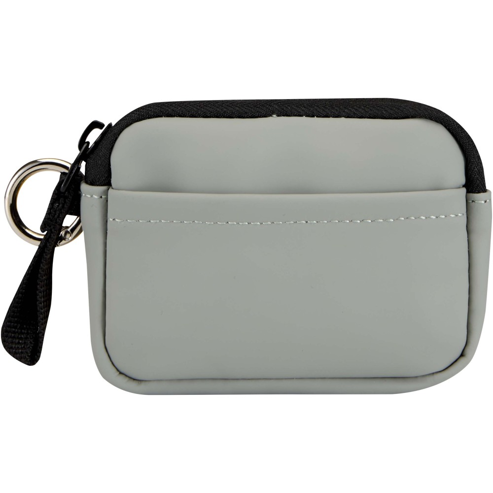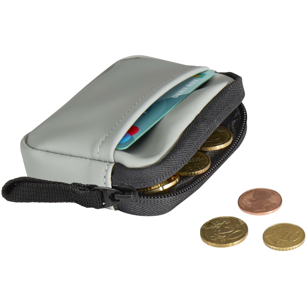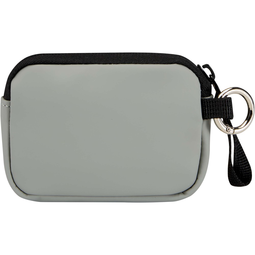 Minőségi újrahasznosított PU bőrből készült, felcsatolható pénztárca, amely ötvözi a letisztult stílust a mindennapi praktikummal. A biztonságos cipzáras záródással és belső kártyatartó rekesszel ellátott kiegészítő gondoskodik az értéktárgyak rendszerezett és könnyen hozzáférhető tárolásáról. Egyszerűen rögzíthető táskához, övbújtatóhoz vagy kulcscsomóhoz.