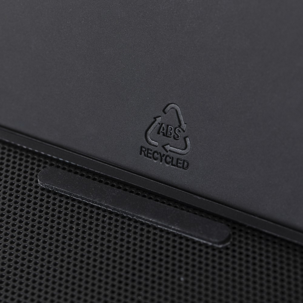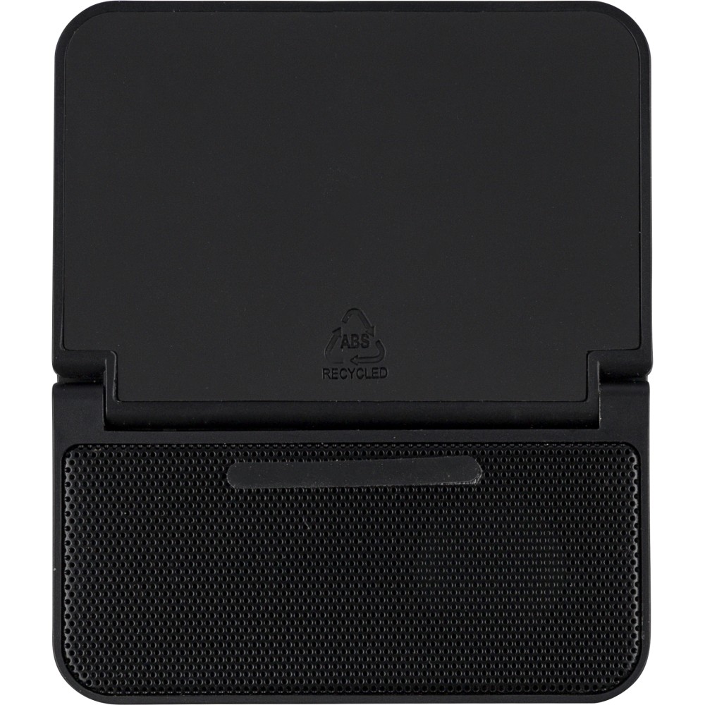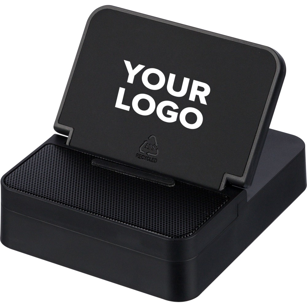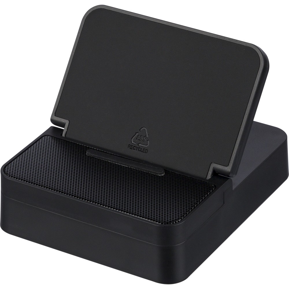 Újrahasznosított ABS-ből készült 3 az 1-ben kocka, 15W vezeték nélküli töltővel, 5W hangszóróval és telefontartó funkcióval. 5.4-es vezeték nélküli technológiával, 1200 mAh akkumulátorral, fém rácsos hangszórófelülettel és újrahasznosított PU borítású felső résszel. A terméktesten recycled (újrahasznosított) alapanyagra utaló logó található. Barna dobozba csomagolva.