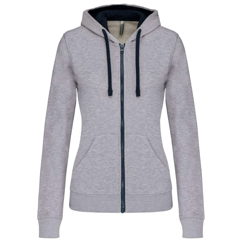 Kariban Contrast női kapucnis pulóver, Oxford Grey/Navy