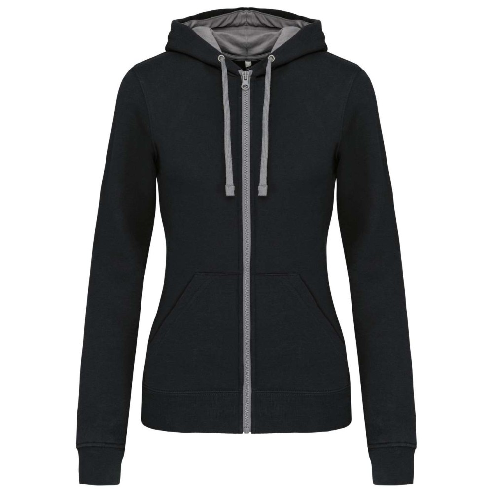 Kariban Contrast női kapucnis pulóver, Black/Fine Grey