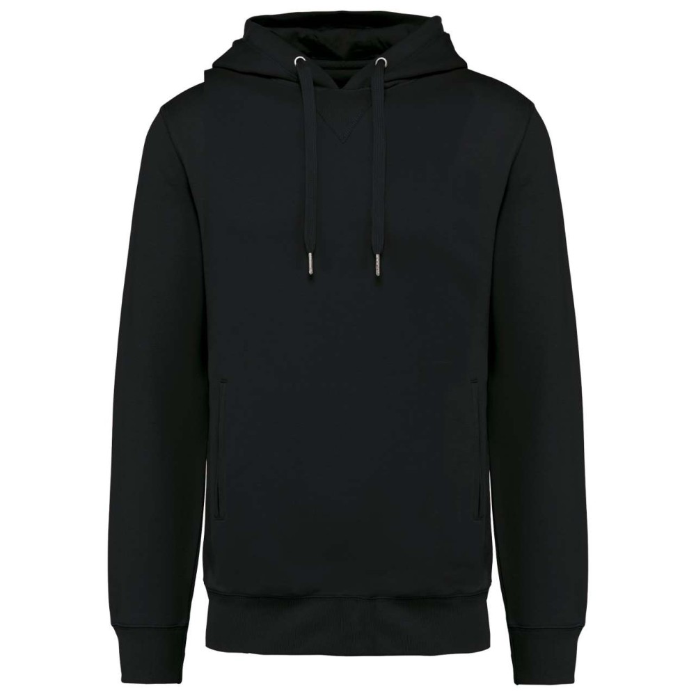 80% organikus pamut / 20% újrahasznosított poliészter. Oxford szürke 75% bio pamut / 25% újrahasznosított poliészter. Francia frottír LST (Low Shrinkage Terry). Szövet: enzimes mosás. Karcsúsított szabás. 2 elülső zseb. Bordázott kézelő, bordázott szegély és bélelt kapucni. Fém véggel ellátott húzózsinór. Félhold alakú kivitel a nyakkivágásnál, hogy megkönnyítse a díszítéshez való hozzáférést belülről. Twill szalagos nyak és V alakú betét a nyakkivágásnál. Nincs márkacímke a nyakon, csak méretcímke a dekorációhoz való könnyebb hozzáférés érdekében. OEKO-TEX N CQ1007/7 STANDARD 100 tanúsítvánnyal rendelkezik. IFTH.