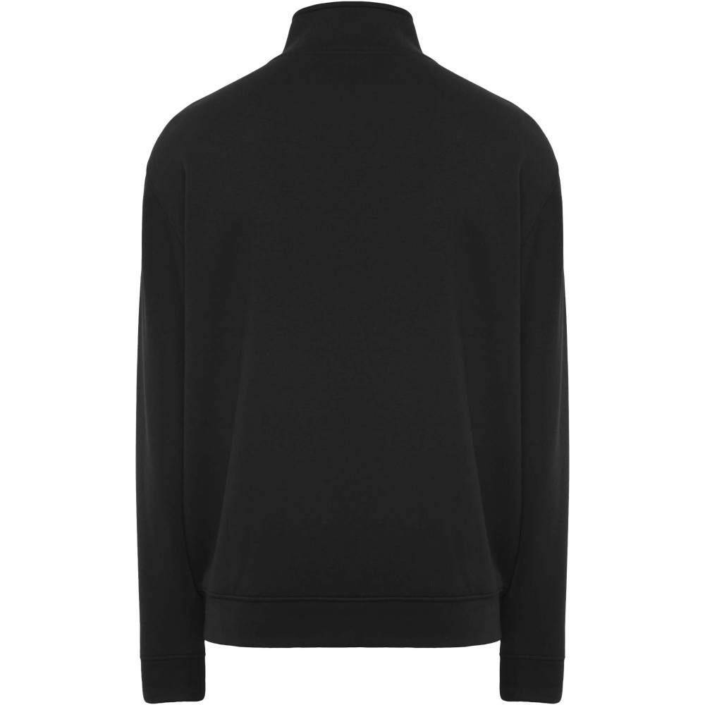 Magasnyakú pulóver, színben illeszkedő cipzárral. Szalagerősített nyakvonal. 1x1 bordázott anyag a kézelőn és a derékrészen. 50% pamut és 50% poliészter, 280 g/m2.