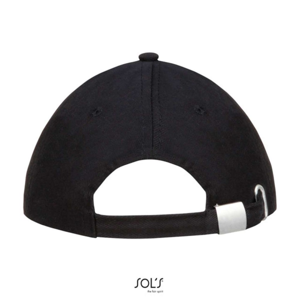 100% pamut vastag anyag, 260 g/m2. Formázott simléder, szellőzőnyílások, fém csattal fejméretre állítható.