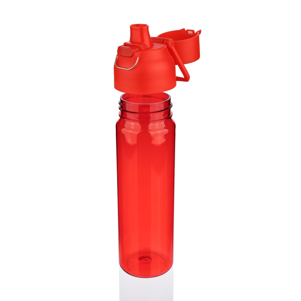 Tritán ivópalack 750 ml-es űrtartalommal, a kupakhoz illő színes palacktesttel. Tartós és könnyű anyagokból (PP) készült, amelyek ellenállnak a nedvességnek, a vegyszereknek és a mindennapi igénybevételnek. Nyomógombos zárral és felső hordozófogantyúval rendelkezik. Mindennapi használatra tervezve munkához, iskolához vagy szabadidős tevékenységekhez.