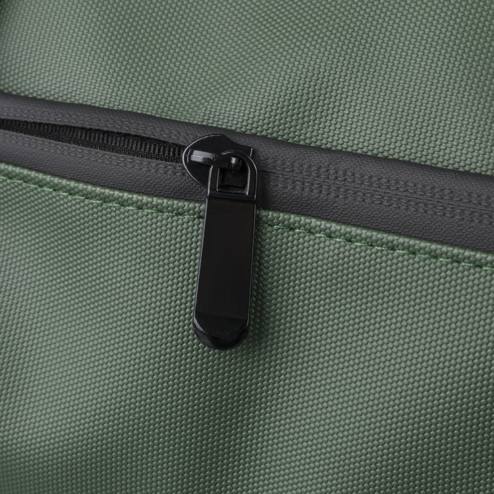 600D poliészterből készült rPET sporttáska 210D béléssel és vízlepergető PU bevonattal, 40 literes űrtartalommal. Elülső és oldalsó cipzáras zsebbel, hálós oldalzsebbel, két fogantyúval és állítható vállpánttal rendelkezik. Külső felületén rPET címkével ellátva.