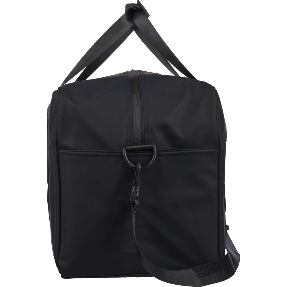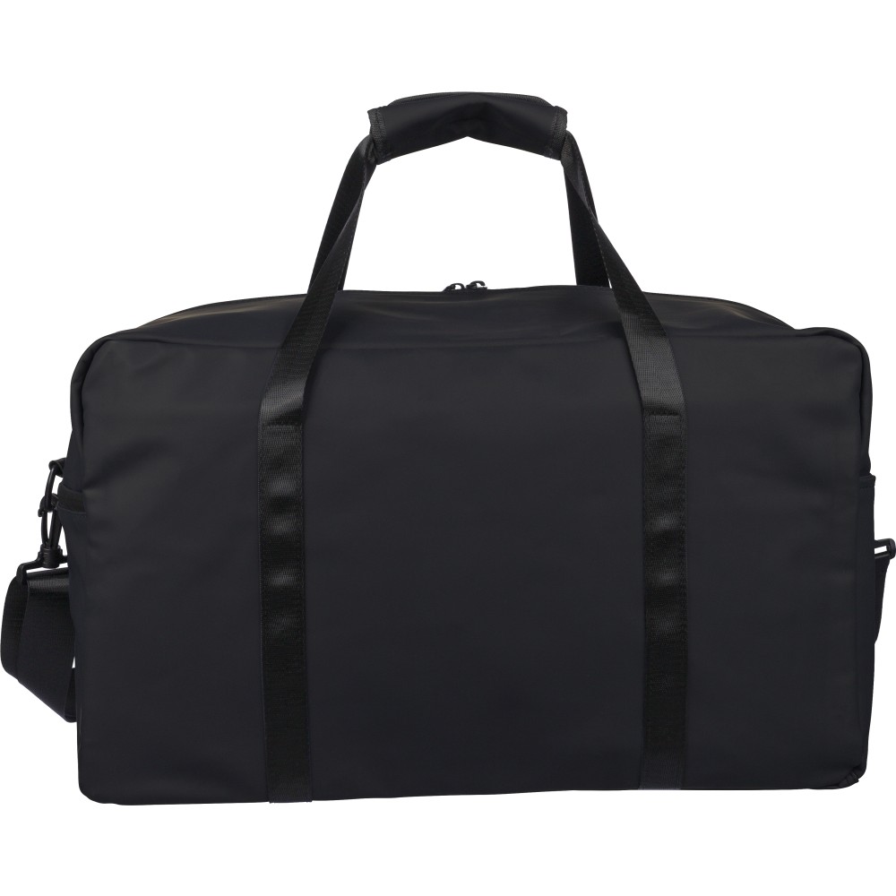 Újrahasznosított PU anyagból készült sporttáska 35 literes űrtartalommal, 210D újrahasznosított poliészter béléssel. 108 cm hosszúságú és 2,5 cm szélességű fogantyúval rendelkezik tépőzáras rögzítéssel, valamint 130 cm hosszúságú és 3,9 cm szélességű állítható vállpánttal. Elülső cipzáras zsebbel és nagy fő rekesszel készül. A belső címkén újrahasznosított alapanyagra utaló logó található.