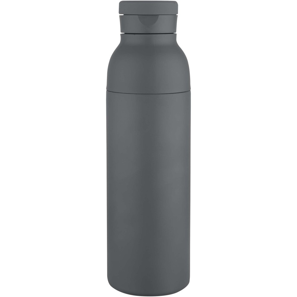 RCS tanúsítvánnyal rendelkező rozsdamentes acélból készült, duplafalú, vákuumszigetelt palack, amelynek fedelén egy diszkrét, beépített szilikon fogantyú található. Az italokat 48 órán át hidegen, vagy akár 12 órán keresztül melegen tartja. A két részből álló konstrukció megkönnyíti a tisztítást, míg a tartós porszórt bevonat és a belső rézszigetelés hosszú élettartamot és kiváló hőtartást biztosít. A terméket újrahasznosított kartonból készült ajándékdobozban szállítjuk. Űrtartalma: 650 ml.