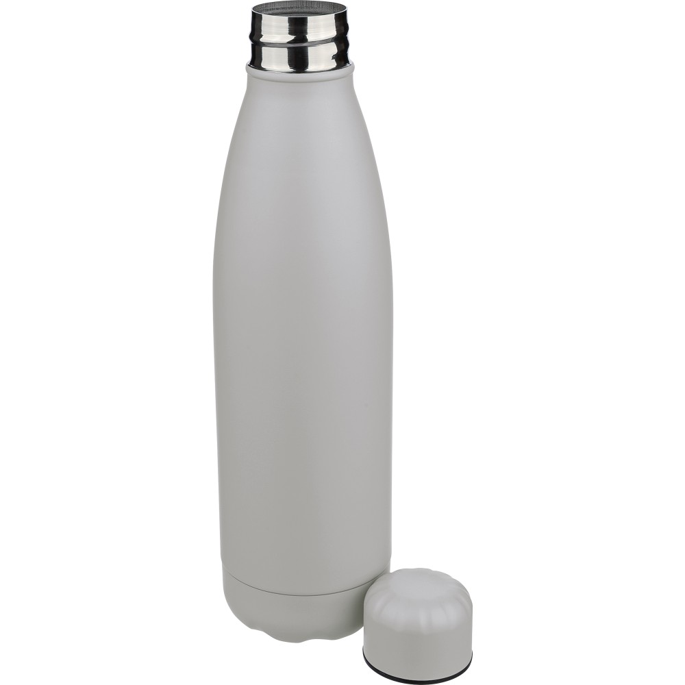 Újrahasznosított rozsdamentes acél, egyfalú ivópalack 700 ml-es űrtartalommal. Hideg italok tárolására alkalmas, és 3-4 órán át hűvösen tartja azokat. A 304-es rozsdamentes acél belső kiváló tartósságot, rozsdaállóságot és biztonságos élelmiszer-érintkezést garantál. Matt színű felülettel, valamint színben illeszkedő csavaros fedéllel és aljjal. Az elülső oldalon gravírozott újrahasznosított logó található. Egyenként barna kartondobozba csomagolva.