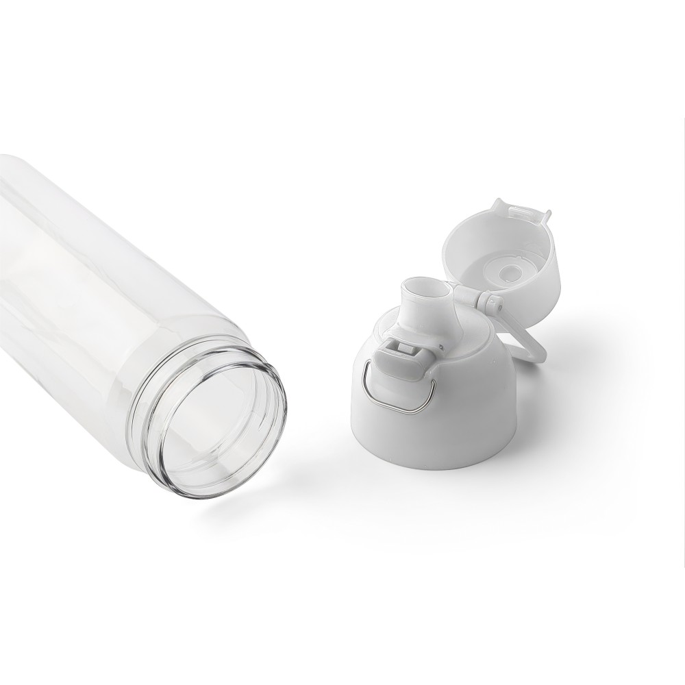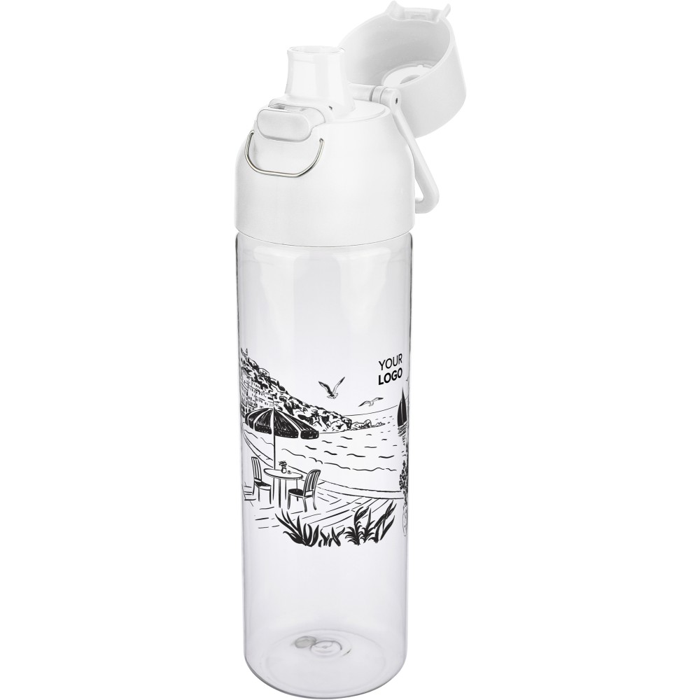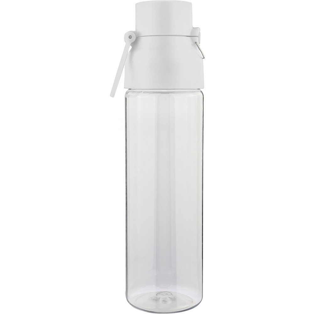 Tritán vizespalack 750 ml-es űrtartalommal, átlátszó palacktesttel és színes kupakkal. Tartós és könnyű anyagokból (PP) készült, amelyek ellenállnak a nedvességnek, a vegyszereknek és a mindennapi igénybevételnek. Mindennapi használatra tervezve; biztonságos nyomógombos zárral és felső hordozófogantyúval rendelkezik. Alkalmas munkához, iskolához vagy szabadtéri tevékenységekhez.